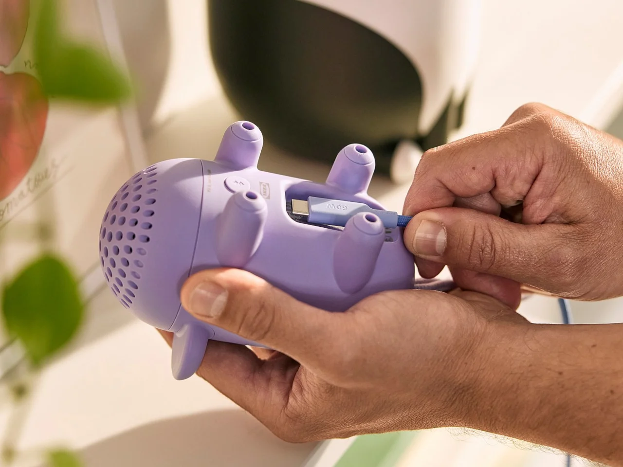 La queue tressée permet aux petites mains de saisir et de déplacer facilement le haut-parleur d’une chambre à une autre. La recharge se fait via USB-C, bien que le câble et l’adaptateur soient vendus séparément. IKEA souligne que les adultes doivent s’occuper de cette tâche. De plus, le haut-parleur ne peut pas être utilisé pendant la recharge, ce qui permet aux enfants de contrôler leur musique tout en laissant aux parents la gestion des batteries.