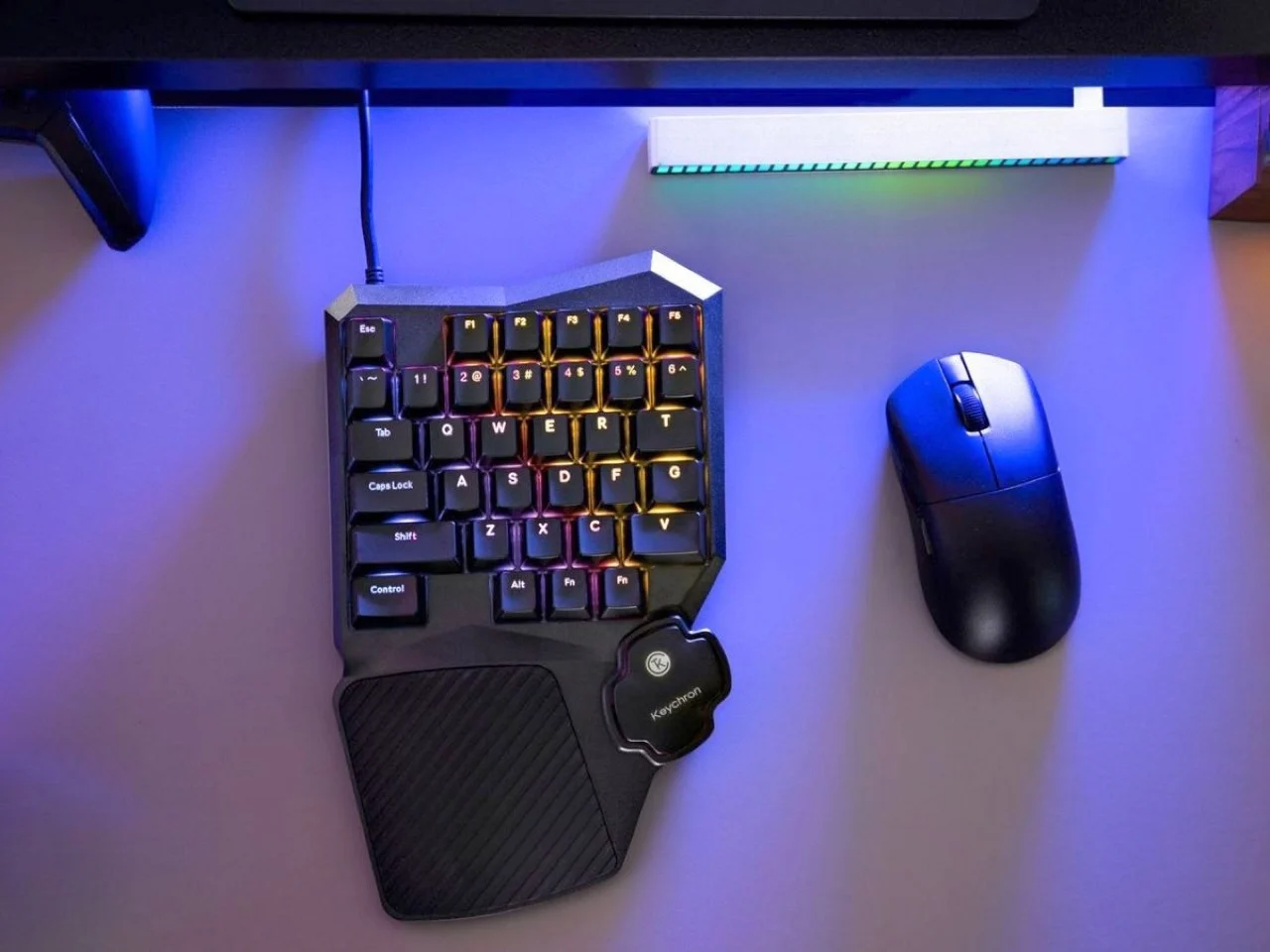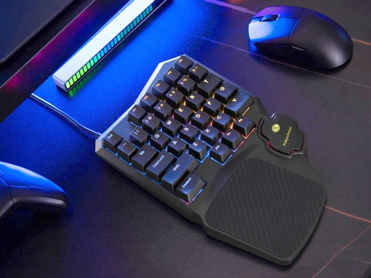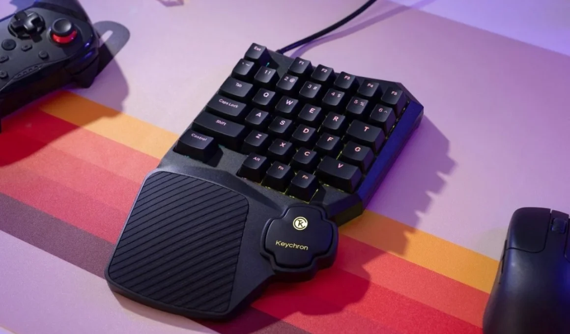 Cependant, Keychron refuse de se conformer à cette tradition. Leur modèle C0 HE 8K est un pavé de jeu à une main composé de 35 touches, dérivé de la moitié gauche d’un clavier conventionnel. Il se distingue par un châssis dynamique et agressif, incluant un repose-poignet intégré, des interrupteurs magnétiques à effet Hall, et un taux d’interrogation de 8 000 Hz, conçu spécifiquement pour répondre aux besoins des gamers.