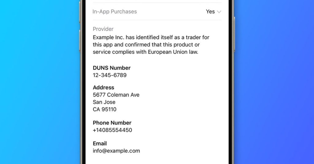 Ce changement découle des exigences du Digital Services Act (DSA) de l’Union Européenne, obligeant les plateformes en ligne à vérifier et afficher les coordonnées de chaque « commerçant » distribuant des applications numériques. Dans le cadre de cette réglementation, toute personne générant des revenus par le biais d’une application doit fournir ses informations de contact. Cela comprend également les revenus indirects issus de la publicité ou des achats intégrés, à l’exception des applications entièrement gratuites sans publicité.