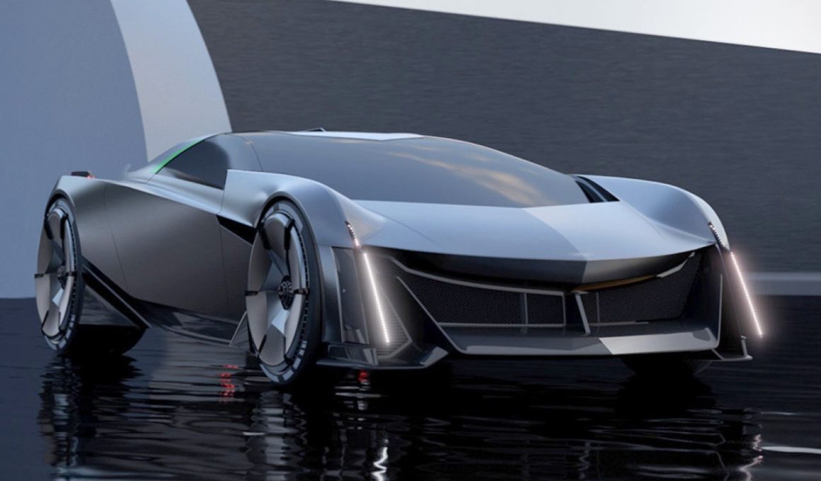 La signature lumineuse verticale de Cadillac est ici réinterprétée d’une manière qui rend tout le reste sur la route obsolète. À l’avant, des LED ultra-fines descendent comme des poignards numériques, encadrées par des entrées profondes qui pourraient tout aussi bien être des tunnels de vide. La grille — si on peut l’appeler ainsi — est principalement un espace négatif, un grognement inversé interrompu uniquement par une ligne centrale qui découpe la voiture comme un scalpel. Rien dans l’avant n’a d’aspect ornemental. Même les subtiles crêtes du capot semblent conçues pour améliorer l’appui aérodynamique.