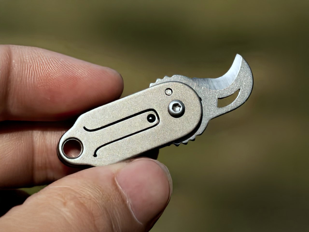 Le ScytheBlade se distingue par sa forme compacte et sa puissance de coupe. Avec une longueur de 46 mm, il constitue un outil pratique sans alourdir vos poches. Sa construction en titane assure une durabilité exemplaire.