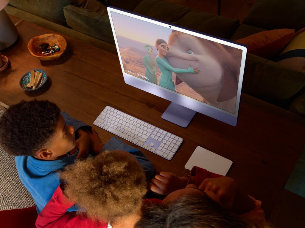 En outre, la nouvelle caméra prend en charge la fonction Desk View, qui utilise l’objectif grand angle pour montrer simultanément à l’utilisateur une vue de haut en bas de son bureau. Cette fonction est particulièrement utile pour les éducateurs qui souhaitent présenter leurs cours ou les créateurs de leurs projets, ce qui accroît la polyvalence de l’iMac en matière de communication vidéo. La caméra est complétée par un ensemble de trois microphones de qualité studio dotés de la technologie beamforming, qui garantit un son cristallin, et par un système audio à six haut-parleurs qui offre une expérience audio immersive pour les appels et les médias.
