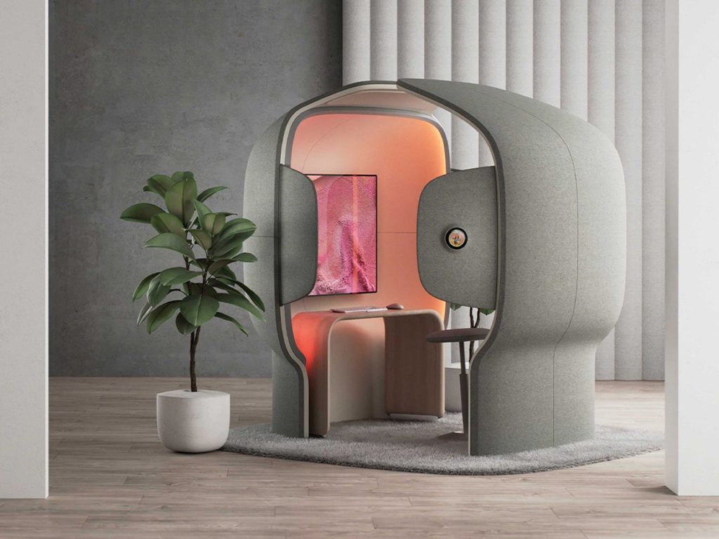 Dans le monde bruyant des bureaux ouverts, les bureaux pods offrent un sanctuaire nécessaire, permettant de se concentrer sans les distractions habituelles. Par exemple, le pod Iris, conçu avec Deepak Chopra et Yves Behar, crée un espace propice à la méditation avec un intérieur fait de matériaux durables et de technologies de son et de lumière.