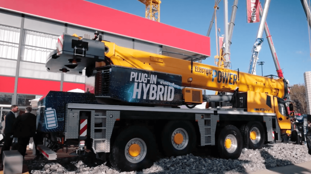 Grove a présenté son premier concept de grue tout-terrain hybride, une GMK4100L-2, sur le stand de Manitowoc à bauma 2022. La grue a une superstructure entièrement électrifiée, alimentée par un générateur couplé au moteur diesel, et peut également se brancher sur le réseau électrique public pour charger sa batterie de 100 kWh.