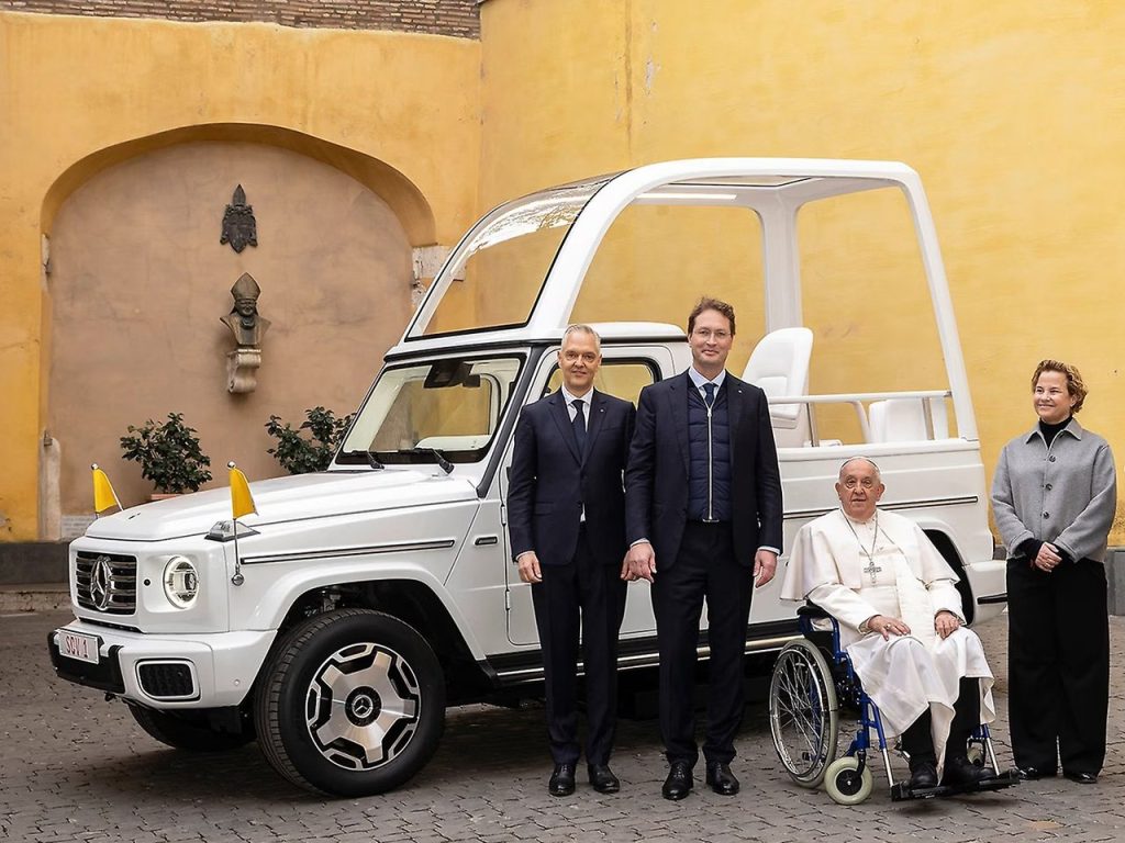 Le véhicule a été personnellement remis au Pape François par le CEO Ola Kallenius, qui a exprimé sa gratitude à la Sainteté pour sa confiance dans la marque. Cette création unique est basée sur la Mercedes G580 Wagon, avec une version modifiée du groupe motopropulseur, dans laquelle toutes les roues sont entraînées par quatre moteurs individuels qui fournissent un mécanisme contrôlé pour les déplacements à faible vitesse.