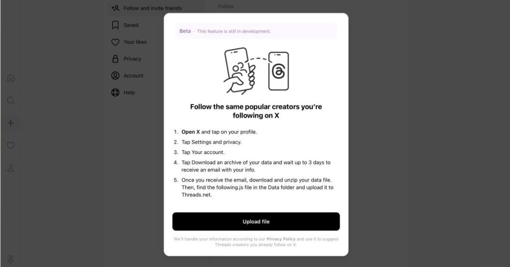 Voici comment Meta recommande d’importer vos données de X vers Threads :