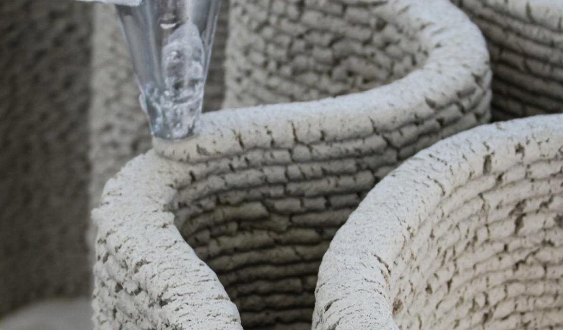 La production de CORNCRETL commence par la collecte, le séchage, l’effritement et le broyage des déchets de nixtamal. Ces éléments sont pulvérisés jusqu’à obtenir une taille de particule uniforme, adaptée pour l’extrusion. Le mélange est ensuite combiné avec des agrégats minéraux et des liants organiques, créant ainsi un matériau imprimable. Des tests de compatibilité d’impression ont été réalisés avec un système intégrant un bras robotique KUKA et un système d’alimentation continue WASP Concrete HD, assurant un processus de construction précis, automatisé et répétable.