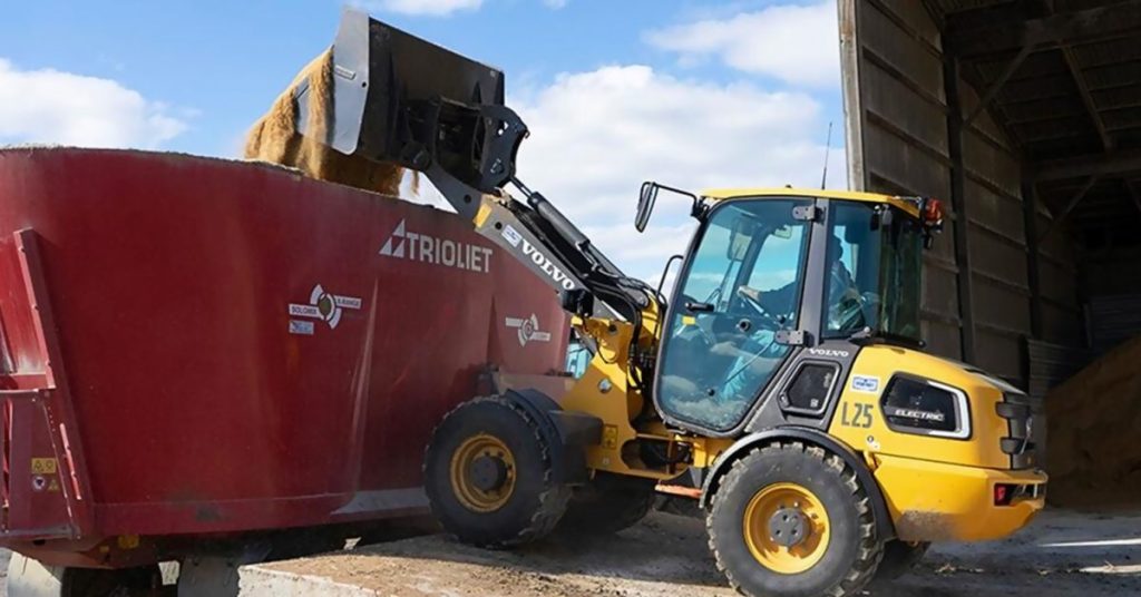 La **Molly Pitcher Dairy** à **Shippensburg**, en **Pennsylvanie**, utilise un chargeur sur roues électrique **Volvo L120** pour nourrir quotidiennement ses 800 vaches laitières, montrant ainsi à d’autres fermes corporatives qu’il est possible d’augmenter la productivité tout en étant plus durable.