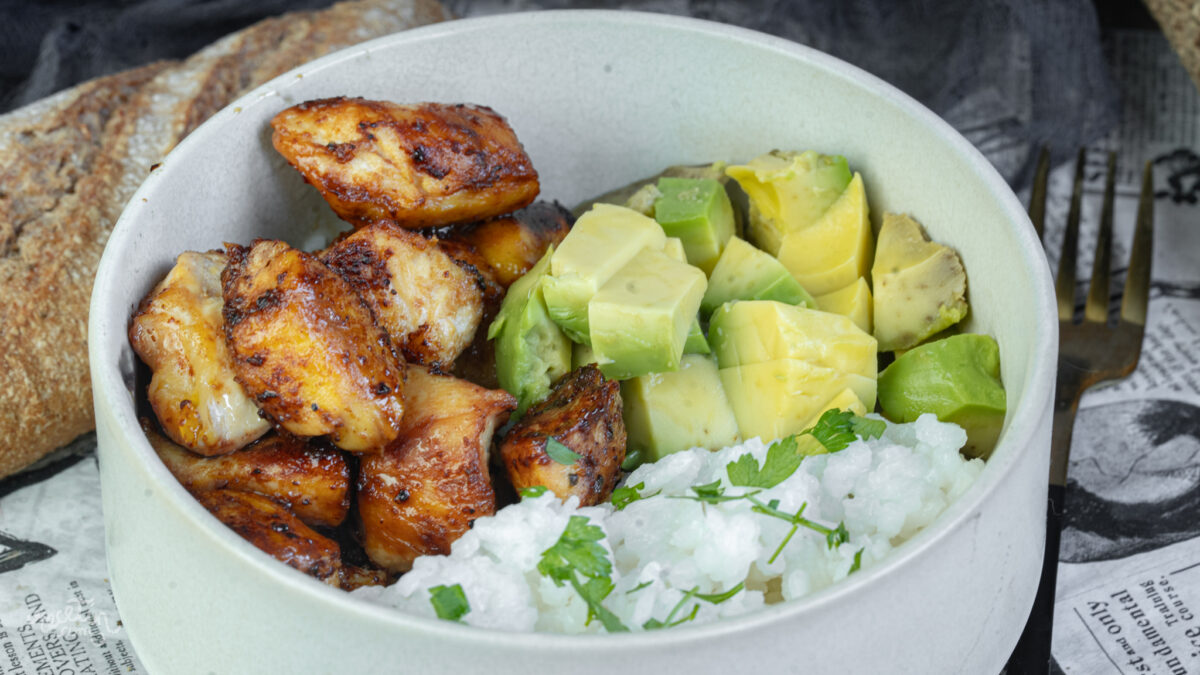 Le poke bowl de poulet offre un mélange harmonieux de textures et de saveurs. La douceur de l’avocat contraste agréablement avec l’intensité de la marinade, tandis que le riz apporte une texture parfaite pour équilibrer l’ensemble du plat.