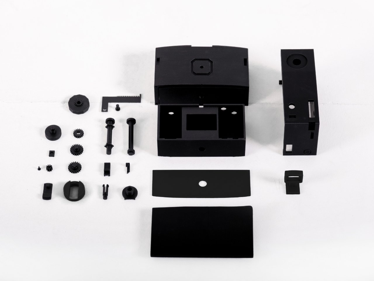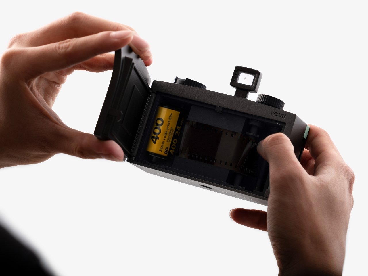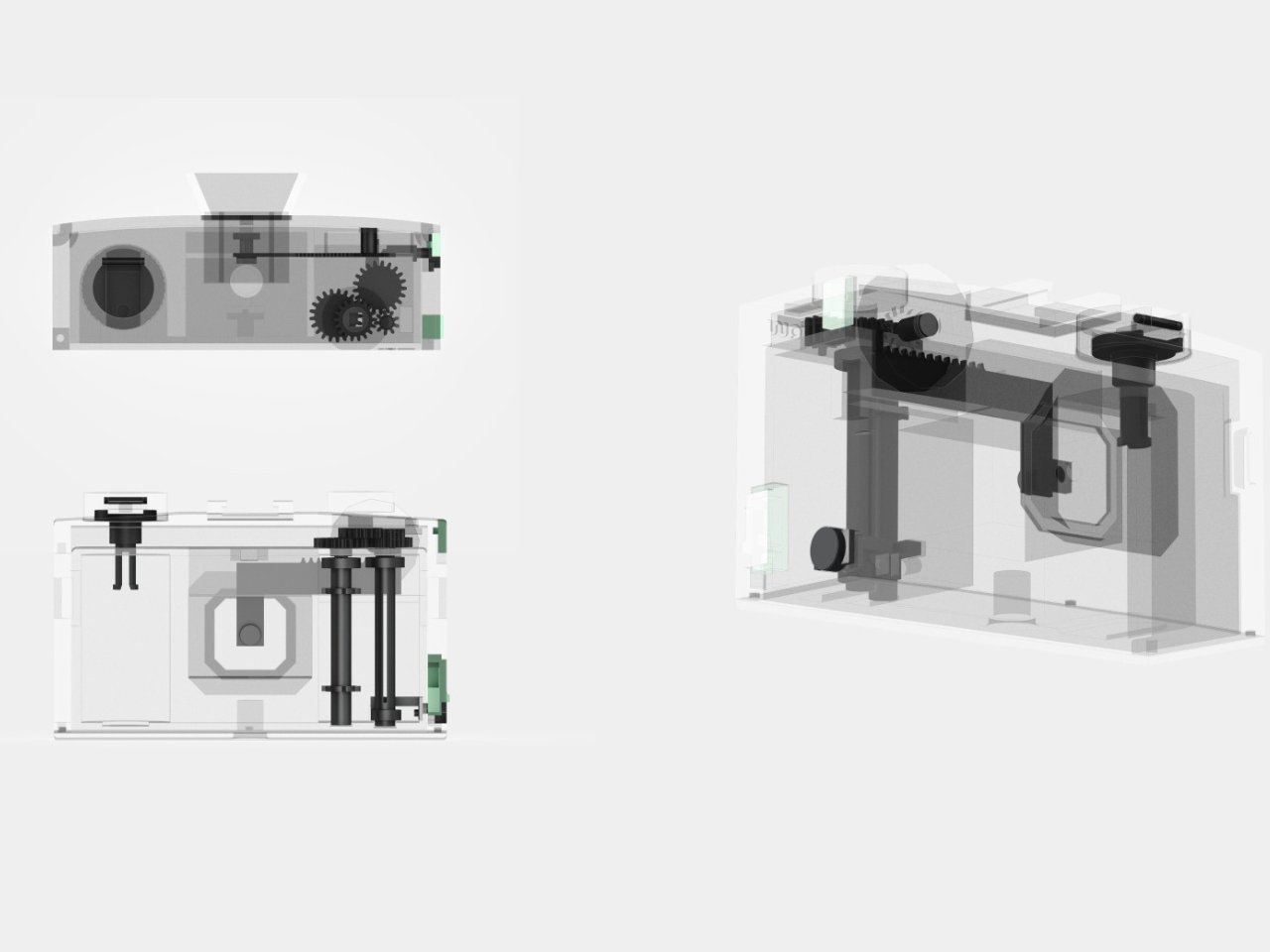 L’ensemble du dispositif se décline en noir mat, agrémenté de discrètes touches vert menthe sur le bouton de déclenchement et les contrôles latéraux. Un viseur minimaliste se trouve sur le dessus, et une sangle en tissu apporte une chaleur tactile à la précision technique. Lorsque vous voyez l’appareil photo démonté dans l’une des photos de concept, tous ces engrenages et composants disposés comme un schéma explosé soulignent combien de réflexion mécanique a été investie dans ce qui est conçu pour être analogique dans un monde numérique.