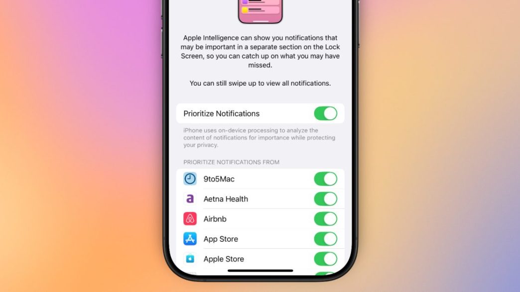 Dans la version initiale des Notifications Prioritaires, iOS 18.4 ne proposait qu’un simple bouton marche-arrêt pour la fonctionnalité. Essentiellement, l’utilisateur pouvait activer les Notifications Prioritaires pour toutes les applications ou pour aucune.