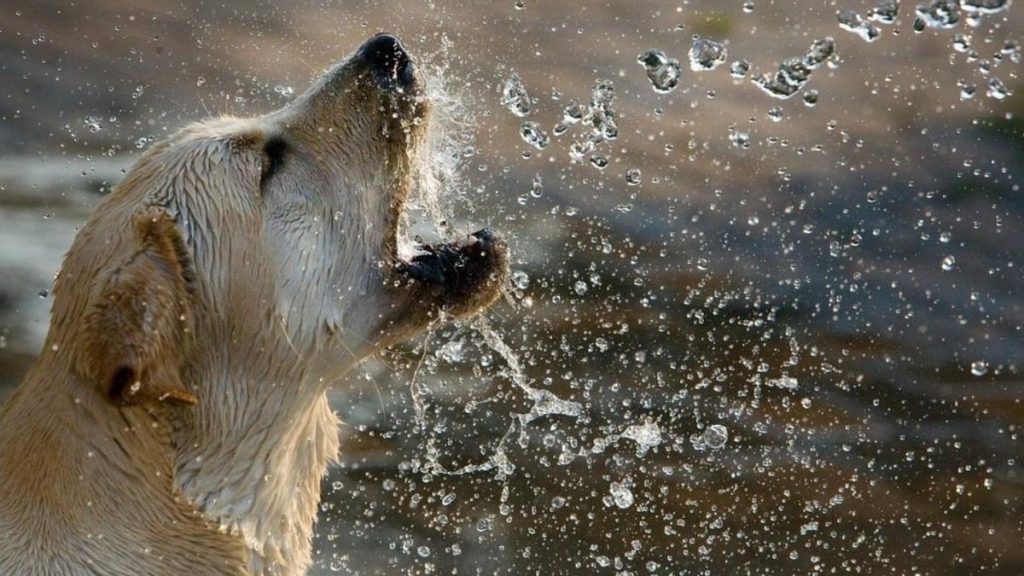 chien se rafraîchissant en été