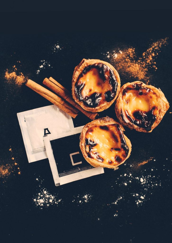 Les pastéis de nata sont généralement saupoudrés de cannelle avant d’être servis tièdes pour plus de saveur.