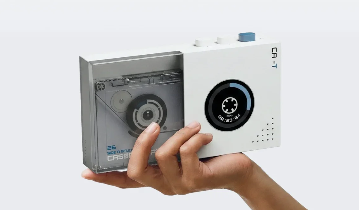 Le CA-T est un dispositif de bureau compact inspiré des lecteurs de cassettes, conçu pour améliorer la concentration en utilisant votre smartphone comme une « tape ».