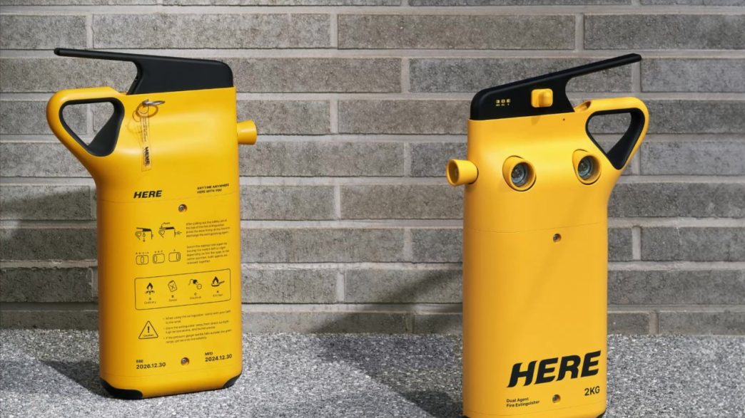 Le modèle HERE comprend également d’autres fonctionnalités très pratiques, comme deux torches intégrées permettant de voir à travers la fumée. Son design éradique toute incertitude quant à son utilisation, grâce à une goupille évidente à retirer, une prise solide et un levier permettant de libérer l’agent extincteur. Contrairement aux concepts d’extincteurs traditionnels, la structure unibody de cet outil inspire la confiance en raison de l’absence de pièces fragiles.