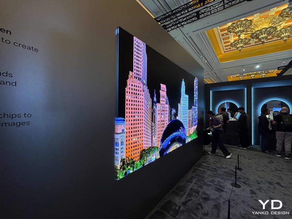 Le téléviseur est conçu pour se plier en deux, réduisant ainsi l’affichage à 70 pouces pour présenter des œuvres d’art, ce qui en fait le premier téléviseur au monde à se plier en deux.