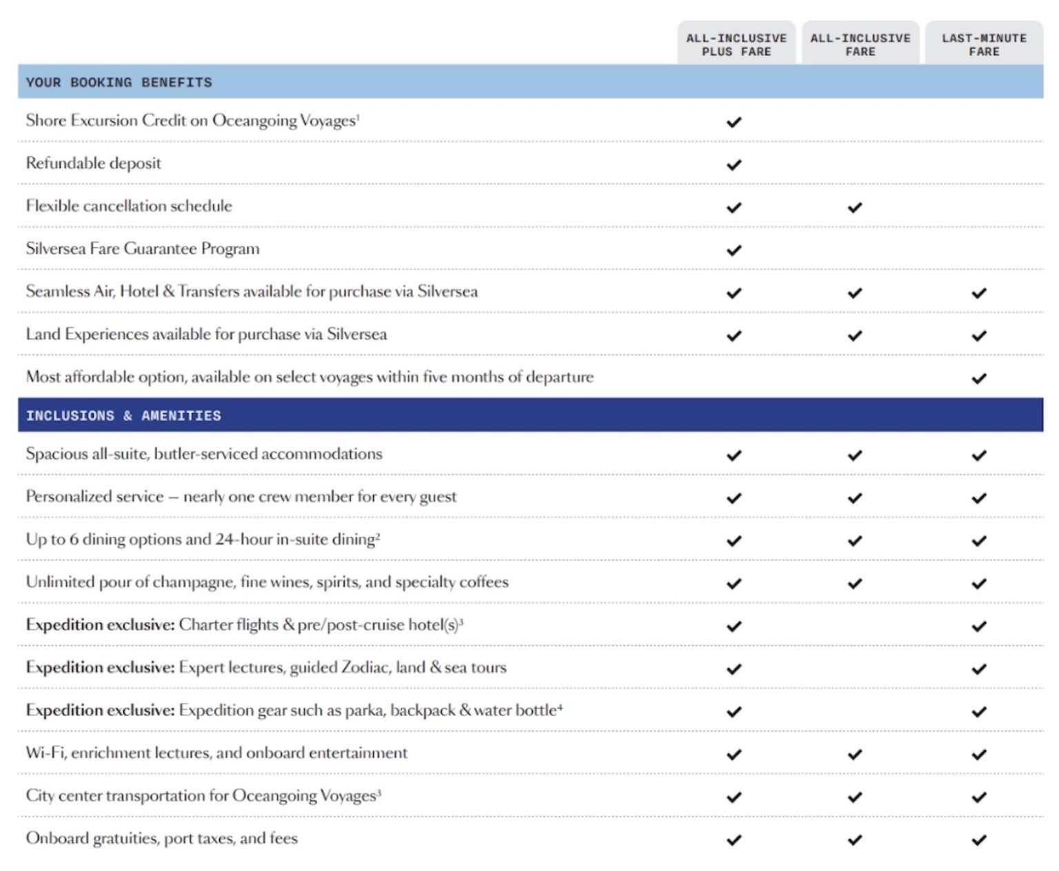 La tarif Todo Incluido Plus est une nouvelle option proposée par Silversea Cruises, conçue pour offrir plus de clarté et de choix aux voyageurs. Elle fait partie d’une structure de prix repensée qui vise à renforcer la personnalisation du voyage, tout en maintenant un niveau de service haut de gamme.