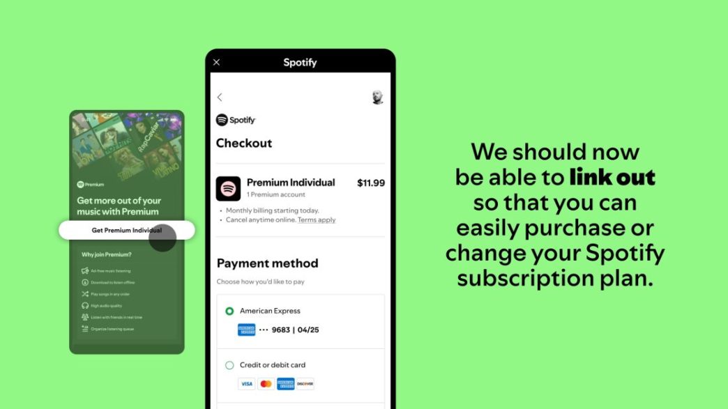 Avec la mise à jour, les utilisateurs auront la possibilité de voir le coût des différents niveaux d’abonnement Spotify Premium directement dans l’application, y compris des détails sur des promotions spéciales. Ils pourront alors cliquer sur un lien pour être redirigés vers leur navigateur web afin d’acheter l’abonnement de leur choix. Cela rendra le passage de Spotify Free à Spotify Premium beaucoup plus fluide.