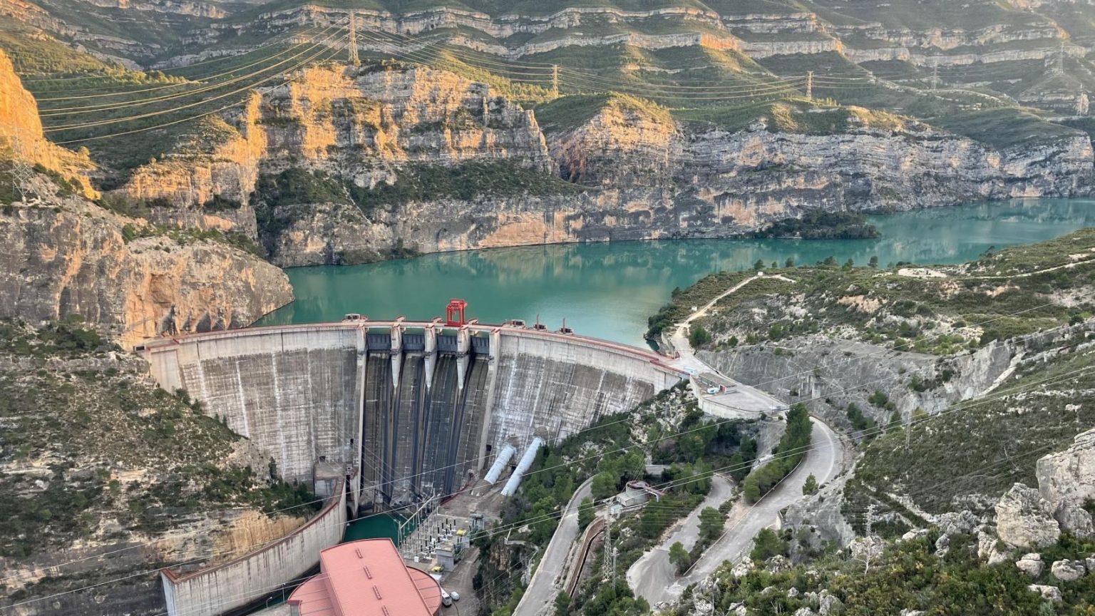 - La Muela I et II : Équipées de sept turbines réversibles, elles génèrent et pompent entre un réservoir supérieur et le réservoir de Cortes, en surmontant un dénivelé de 500 mètres.