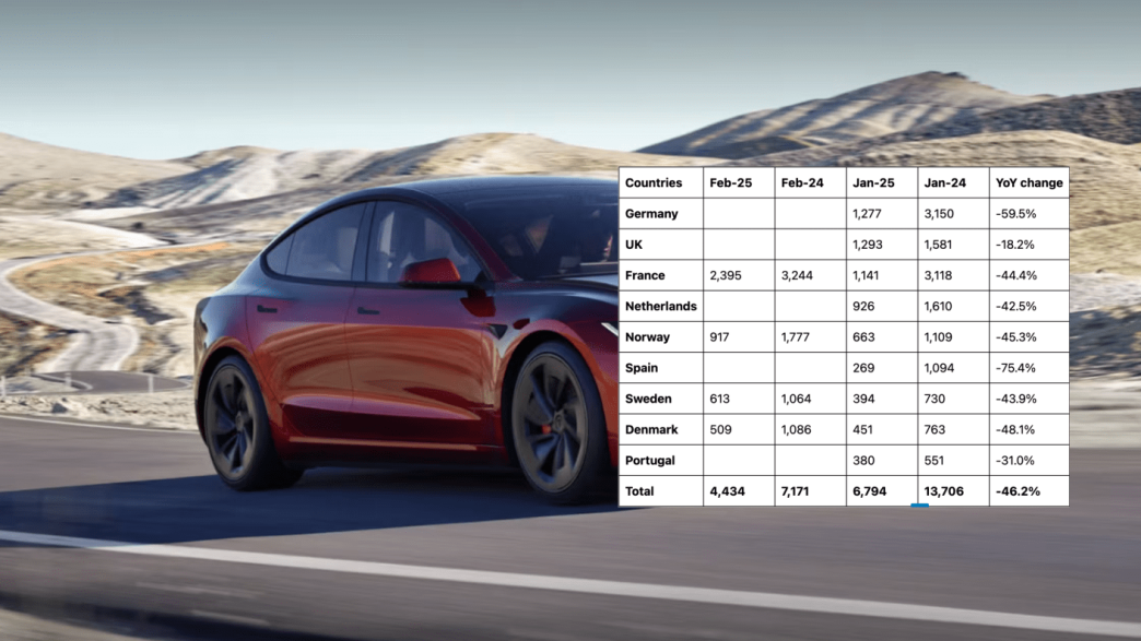 En février 2025, Tesla a vendu 4 434 véhicules en Europe, contre 7 171 en février 2024, soit une baisse de 46,2 % par rapport à l’année précédente.