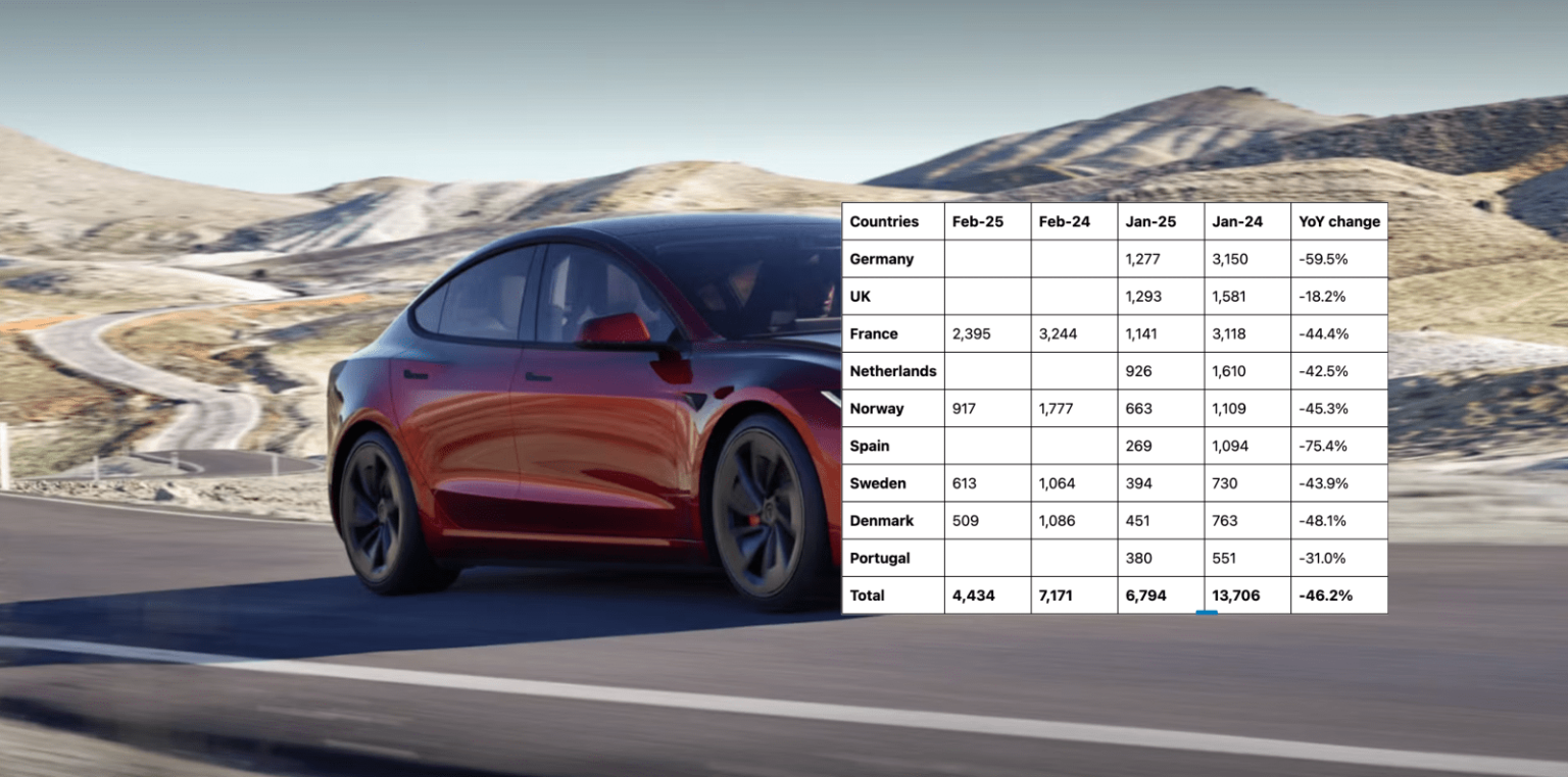 Quels sont les chiffres des ventes de Tesla pour février 2025 en Europe ?
