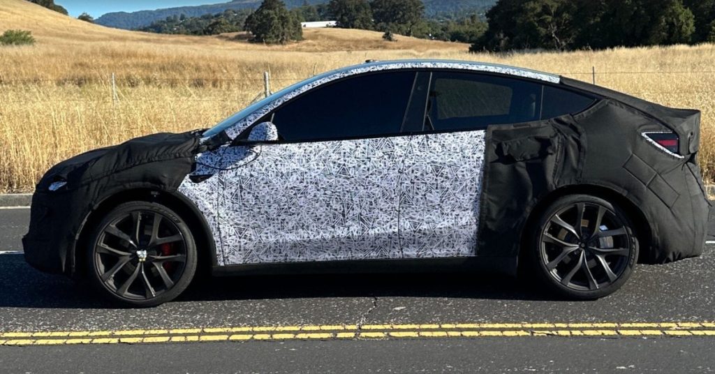 En faisant du vélo près du siège de l’ingénierie de Tesla à Palo Alto, un lecteur d’Electrek a repéré un prototype camouflé du Model Y, que nous avons identifié rapidement comme étant le Model Y Performance avec le design actualisé Juniper.