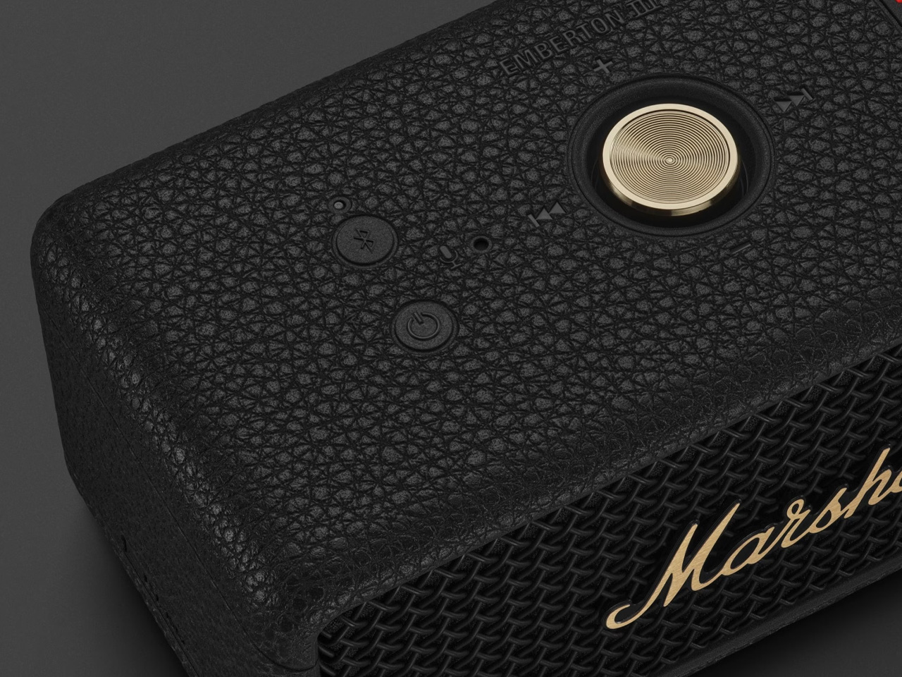 Le Emberton III enveloppe une construction en silicone texturé et une grille en métal autour d’améliorations significatives par rapport à ses prédécesseurs. Deux pilotes full-range de 2 pouces et deux radiateurs passifs diffusent un son à 360 degrés grâce au système True Stereophonic de Marshall, réduisant l’importance de la position sur une couverture de pique-nique ou une sangle de sac. Une certification IP67 permet une immersion dans un mètre d’eau pendant 30 minutes, et ses 32+ heures de vie de batterie couvrent un week-end entier sans prise. Une charge rapide de 20 minutes offre six heures de lecture, une question de santé mentale quand le départ se fait dans une demi-heure et que l’enceinte est à plat.