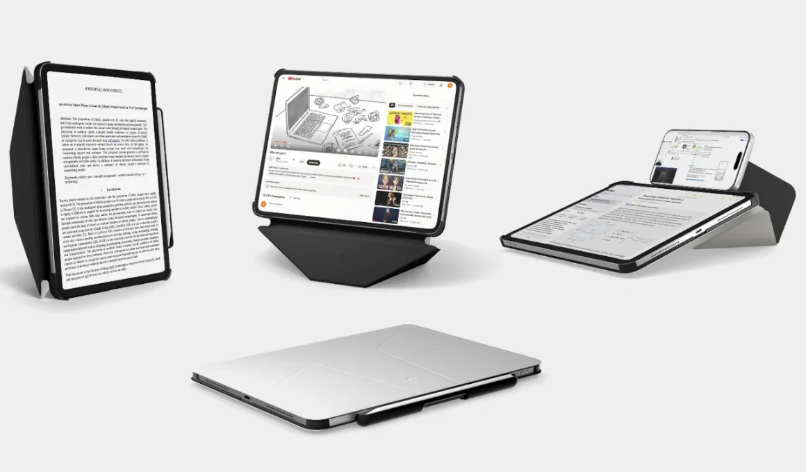 Les iPads ont su s’imposer discrètement dans notre quotidien, devenant des ordinateurs portables, des carnets de croquis, des moniteurs secondaires et même des écrans de télévision. Pourtant, la plupart des coques disponibles sur le marché proposent seulement deux angles d’inclinaison ou transforment l’appareil en une brique encombrante avec un clavier. Ce constat soulève un problème fréquent : le besoin d’un seul accessoire polyvalent qui fonctionne dans toutes les situations, sans avoir à transporter une multitude de supports.