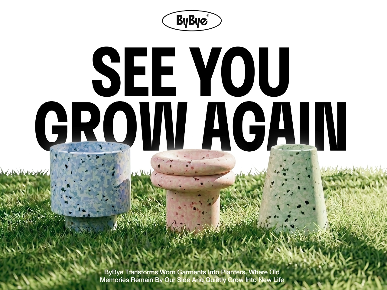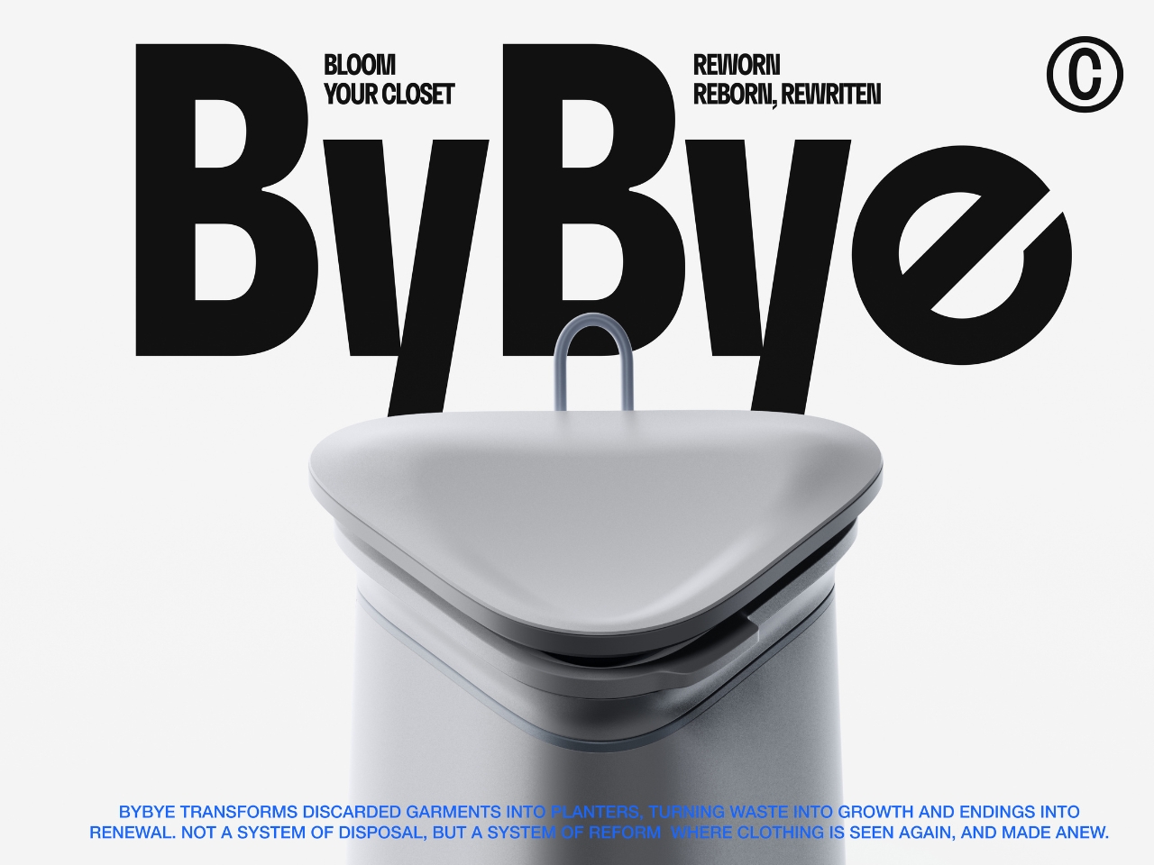ByBye est un concept de machine qui transforme des vêtements usés et jetés en pots de fleurs. Grâce à un processus de broyage, de compression et de chaleur, elle crée des pots non seulement utilisables, mais également esthétiques.