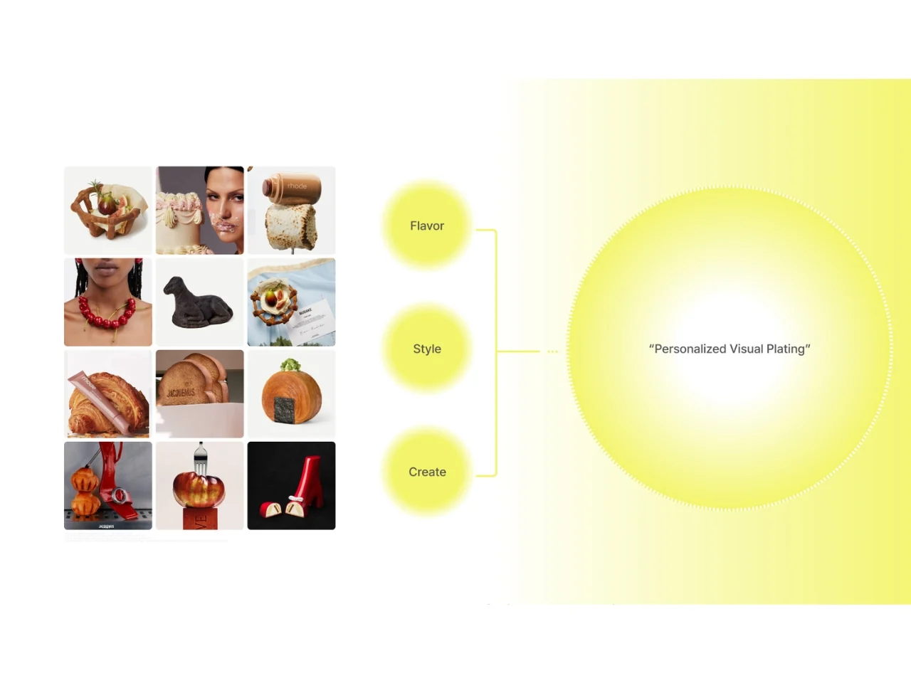 Le dispositif utilise des données personnelles que l’utilisateur a sélectionnées, telles que ses préférences esthétiques et son état d’esprit, pour générer un concept visuel de la présentation du plat. Un projecteur intégré fournit un guide de présentation en temps réel, montrant où placer chaque élément sur l’assiette.