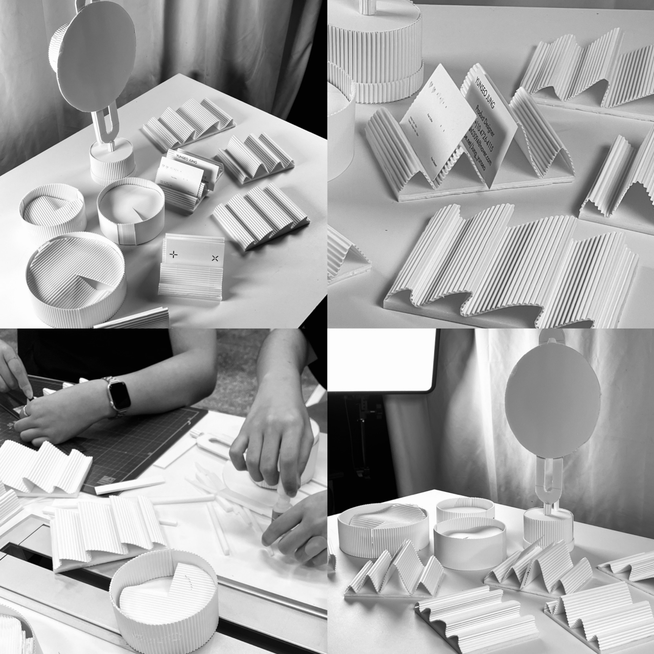 Le porte-cartes emprunte sa forme aux vagues. Il est conçu pour organiser des cartes de visite, des notes et des rappels tout en ajoutant un mouvement vertical, intégrant le thème côtier sans être trop explicite.