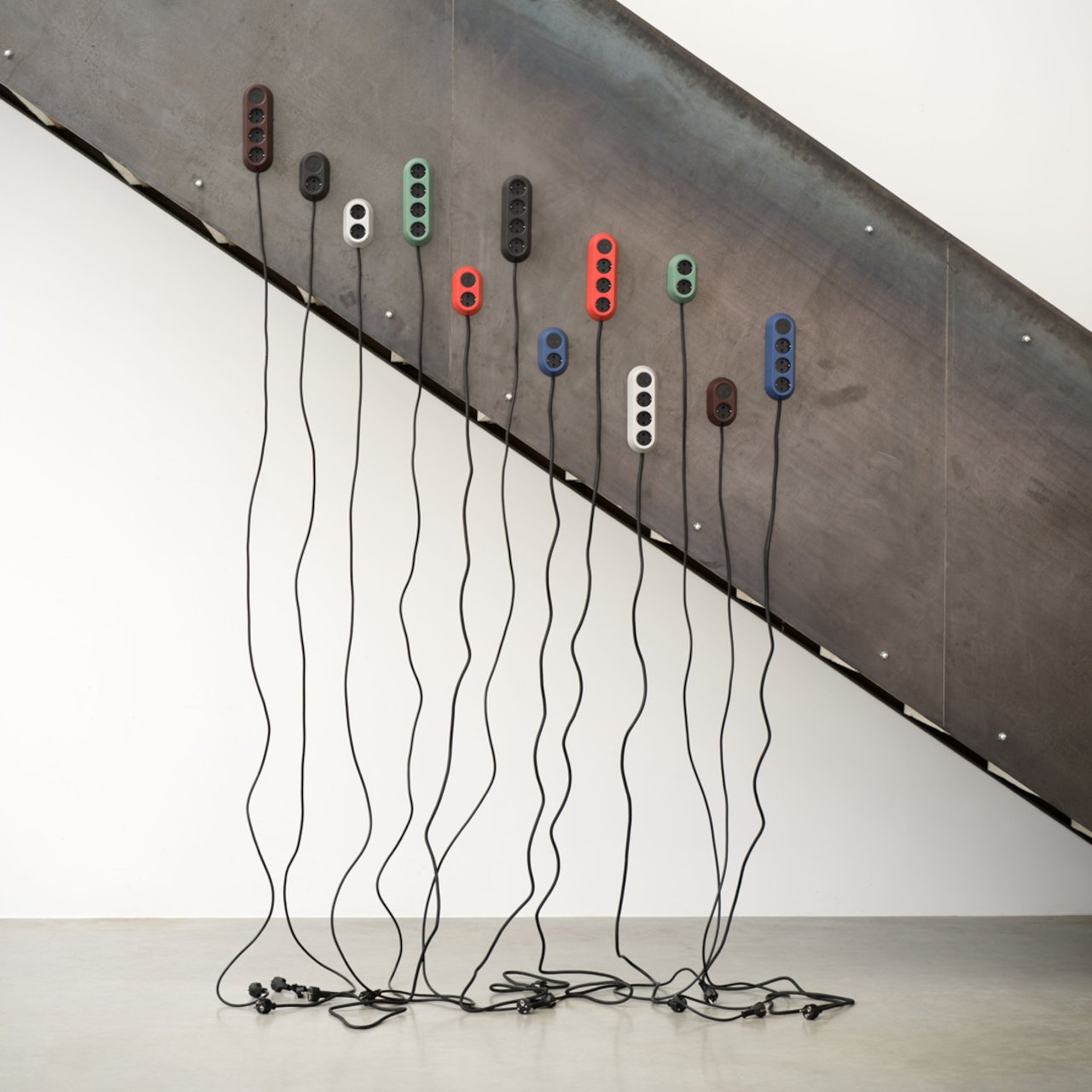 La collection invite à célébrer les accessoires électriques, les rendant visibles et intégrés harmonieusement dans l’espace, plutôt que de les cacher ou de les accepter comme un désordre.