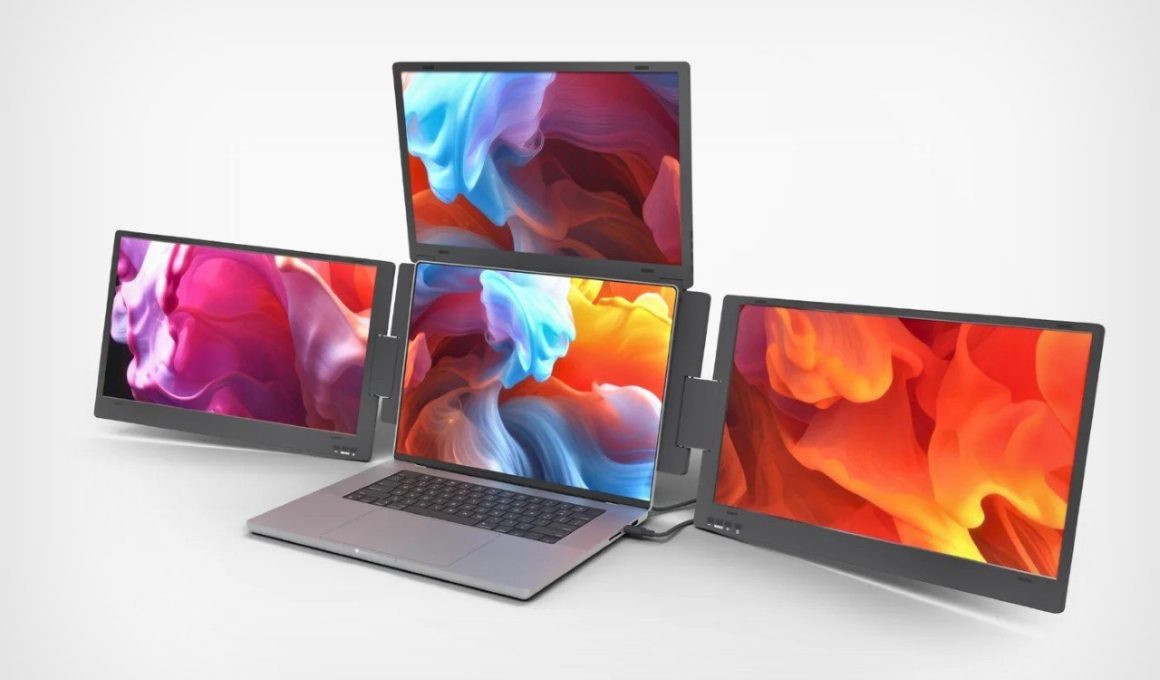 Oubliez les écrans doubles, c’est du passé. Le Triple Boost 14 Pro ne se contente pas d’étendre l’espace d’écran de votre ordinateur portable ; il le transforme en une monstrosité à quatre écrans qui pourrait facilement appartenir au cockpit d’un vaisseau spatial. Imaginez un ordinateur portable entouré de trois écrans supplémentaires de 14 pouces en résolution 1080p, qui surgissent des côtés et du haut, tels des ailes et un viseur de commandement. Branchez-le, installez-le, et votre MacBook devient un véritable titan de la productivité qui dévore les onglets.