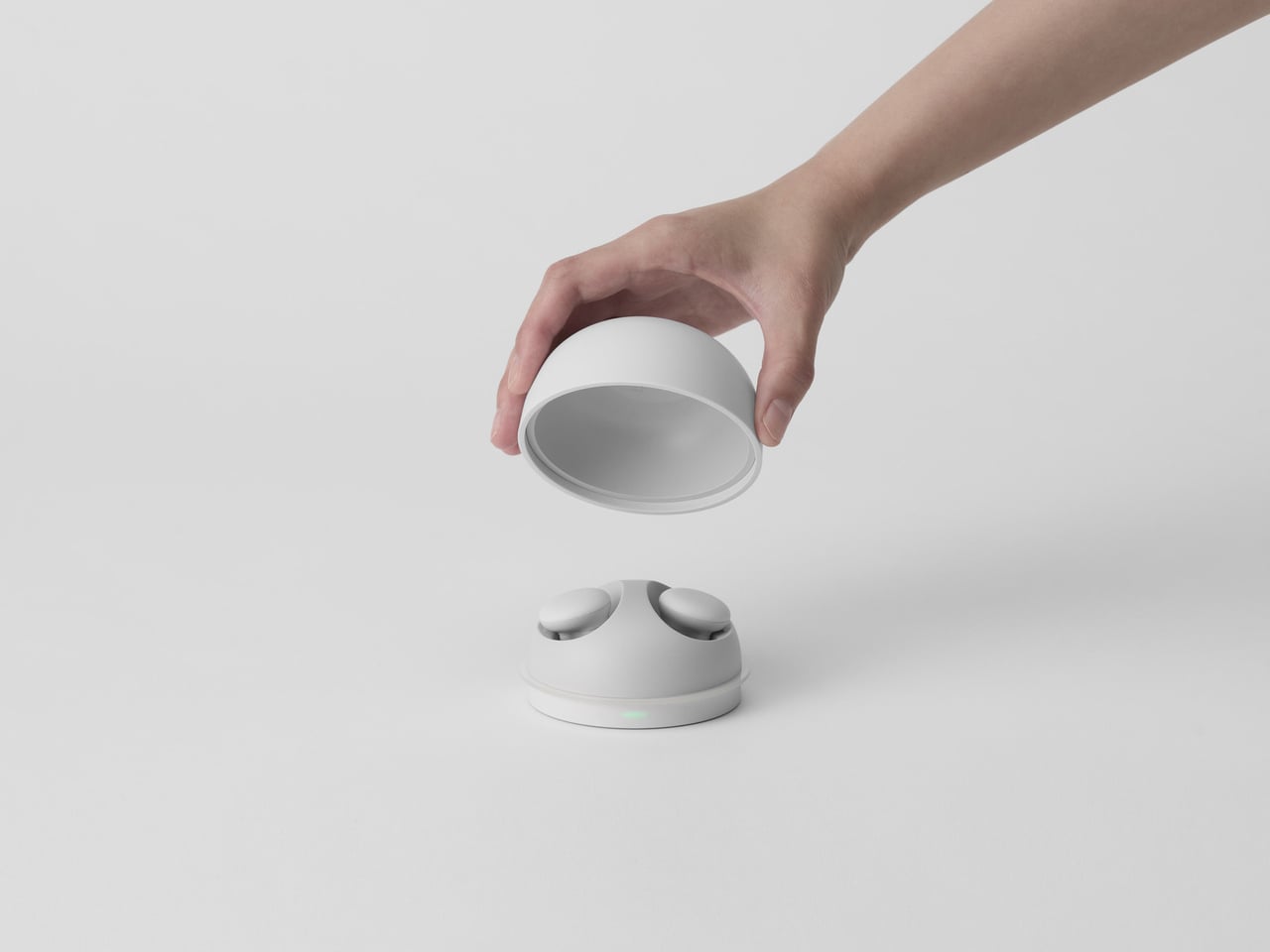Bird.zzz est un projet élaboré par le Jiyoun Kim Studio en collaboration avec LG Labs. Ce dispositif combine une oreillette de bien-être pour le sommeil avec un support en forme de dôme qui fait également office de lampe de chevet. Les oreillettes mesurent le sommeil à l’aide d’EEG et de données physiques, et utilisent cette analyse pour diffuser des sons destinés à améliorer la qualité du sommeil. Placé sur votre table de nuit, il prend l’apparence d’une petite sculpture plutôt que celle d’un simple chargeur.