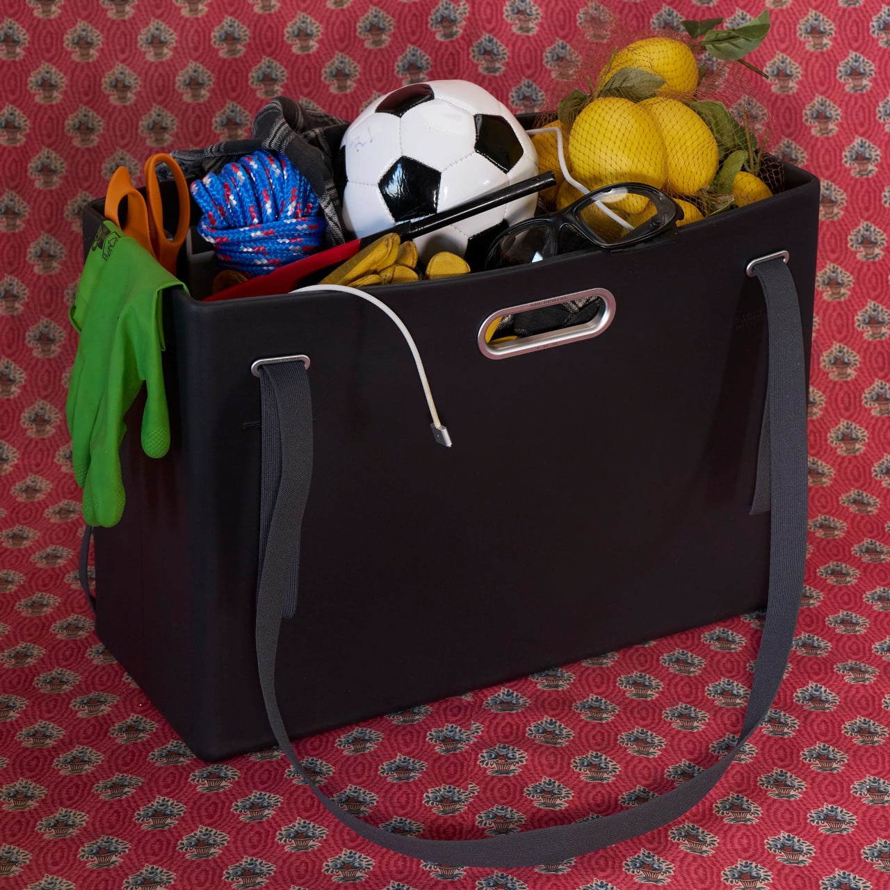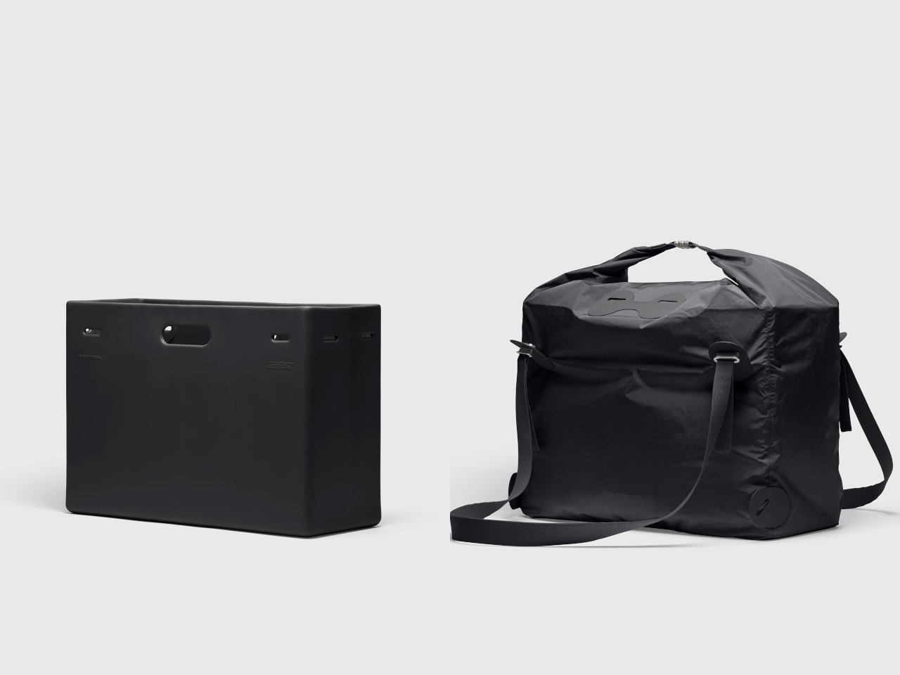 La Unité présente une forme monolithique avec des rayons doux et une découpe ovale pour la poignée. Sa rigidité permet de protéger le contenu tout en offrant une flexibilité suffisante pour absorber les impacts. En version petite, elle fait penser à un caddy utilitaire compact, tandis qu’en version extra-large, elle devient un sac trunk capable d’accueillir des courses, des outils, ou des équipements sportifs. La surface lisse avec un logo Parsel embossé la rend à la fois discrète et élégante.
