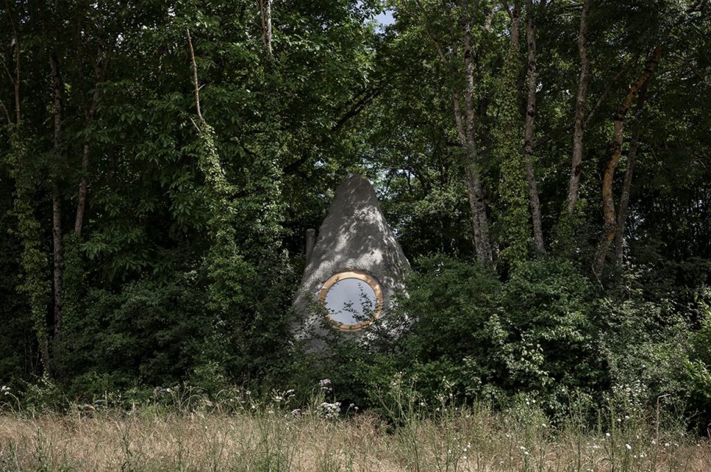 Nichée dans une zone rurale boisée, cette micro-cabane est située dans une résidence d’artistes dans l’est de la France. Elle a été construite en bois puis revêtue d’une finition en béton de roche. L’intérieur de la maison, d’une superficie de 2,5 mètres carrés, est recouvert d’une finition en bois naturel. La maison n’est pas aussi claustrophobe qu’on pourrait le croire, en fait, elle est pleine de lumière naturelle qui entre par les immenses fenêtres à hublots.