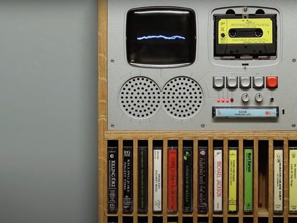 Ce designer appartient clairement à la génération qui aimait encore écouter de la musique sur des cassettes, car le composant principal de cet appareil est son vieux Sony Walkman WM-EX655. Et il possède encore une collection de cassettes, ce qui nous permet de dire que c’est un collectionneur sérieux. Ce qu’il a mis au point est tout droit sorti d’un film de science-fiction des années 1960. Mais au lieu de l’utiliser pour des expériences, il s’en sert comme il était prévu à l’origine : pour jouer de la musique douce, douce.