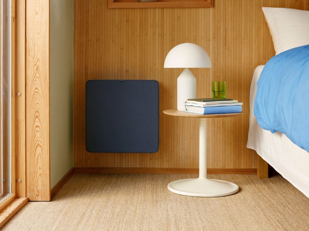 Le design fonctionne également aussi bien debout que couché dans des espaces restreints. L’extérieur en tissu avec une texture subtile évoque plus un revêtement de meuble qu’un boîtier en plastique classique. Ce choix de matériau aide le Renew à se fondre dans des intérieurs scandinaves, minimalistes ou contemporains sans paraître déplacé ou trop technique.