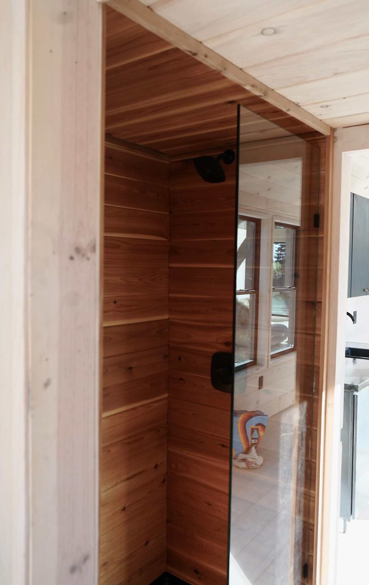 Le succès du Homesteader repose sur son agencement intelligent. La structure de 10,5 mètres comprend une chambre principale ainsi qu’un salon convertible, parfait pour les enfants. La kitchenette spacieuse dispose d’un îlot de 1,2 mètre, tandis que la salle de bain de 3/4 est équipée d’une douche de 1,2 mètre – des luxes souvent négligés dans les conceptions de maisons miniatures.
